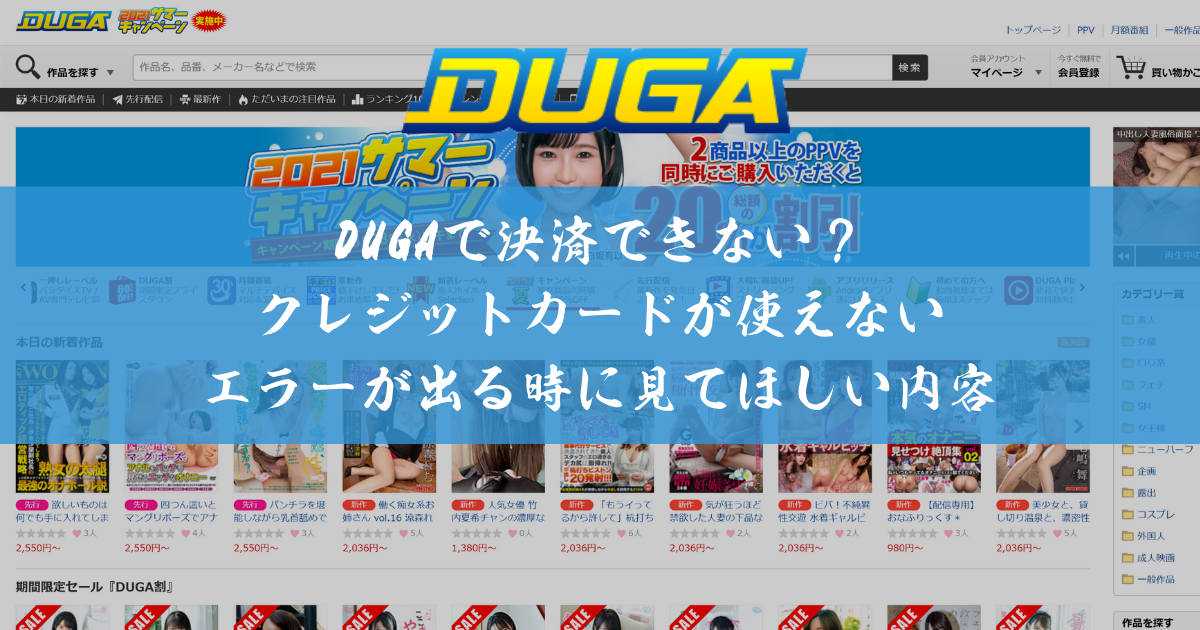 特にこれから記載する、「DUGA推奨の利用環境以外で決済を行った」と、「DUGAで利用できないクレカを利用した」は、非常に良くあるエラー原因です。